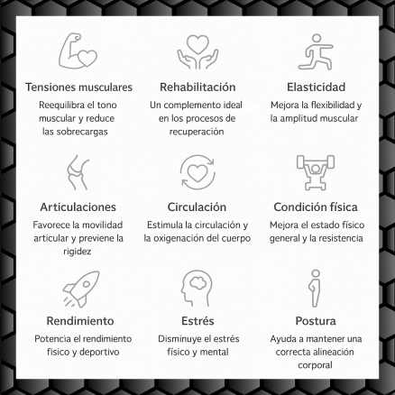 K-Stretch® ayuda a corregir la postura y mejorar el rendimiento físico, actuando directamente sobre el exceso de tensiones musculares y la rigidez articular.
